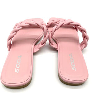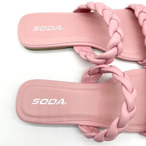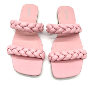 Soda Sandal Slides Women 9 Pastel Pink Braided Flat Square Toe Twee Kawaii Beach