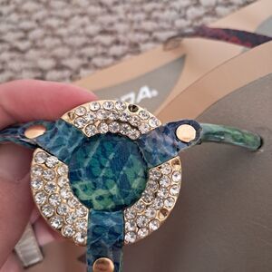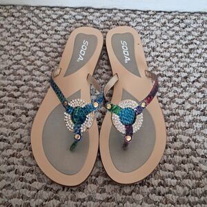 Soda Sandals Flip Flops Women's 7.5 Faux Snakeskin Rhinestones Summer Preppy