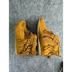 Soda Shoes Women's 10 Dahlia Faux Suede Moccasin Fringe Ankle Bootie