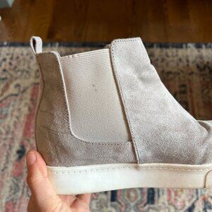 Soda Wedge Sneaker Shoes Side Zipper Light Grey High Top Women Size 7.5 Taupe