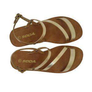 Soda Women's Gold Strappy Sandals - Size 7 - Casual Summer Flats.