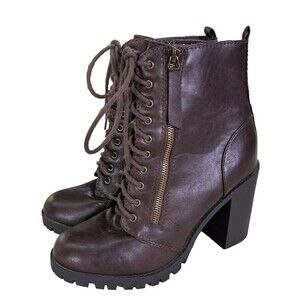Soda Womens Shoes Sz 9 Balboa Brown Block Heel Combat Moto Boots Lug Sole Y2K