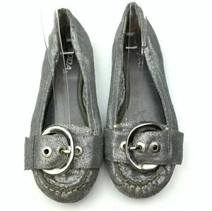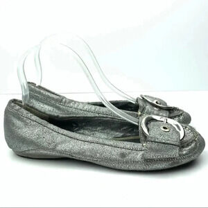 Soda womens flats size 7 crackled Silver round toe buckle loafers