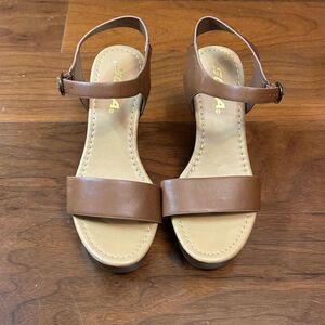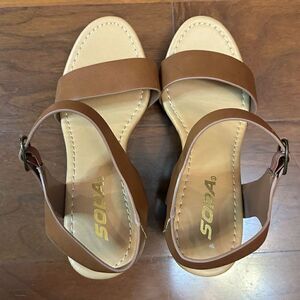 Soda women’s open toe block heel platform brown sandal with ankle strap size 6