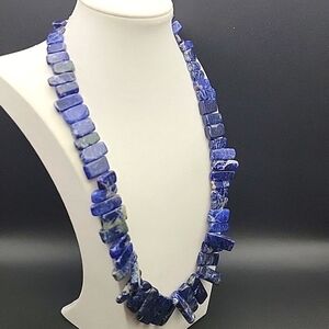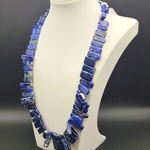 Sodalite Flat Slab 590 Cts Natural Gemstone Single Strand Beaded Necklace