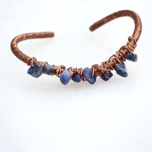 Sodalite Gemstone Wrapped Copper Cuff Bracelet