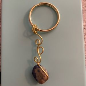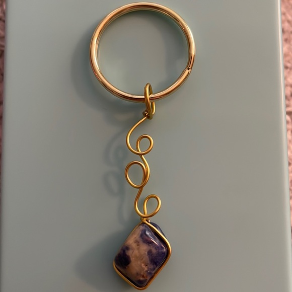 Handcrafted sodalite keychain pendant wrapped in gorgeous gold wire!