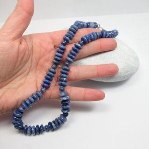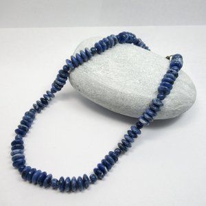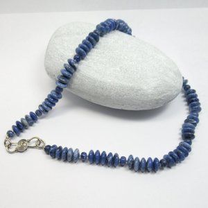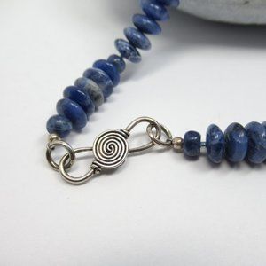 This listing is for the Sodalite gemstone bead necklace pictured. It is 18 inches long and finished with a 925 Sterling silver swirl design Bali style S clasp. This piece was made by me and is from my personal collection of jewelry that I made for myself and never wore. It is made from beautiful blue Sodalite rondelles in two sizes and is strung on quality beading cord with Sterling findings. It is in good unworn condition.