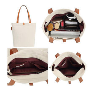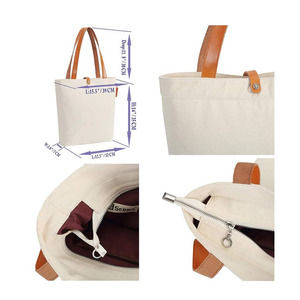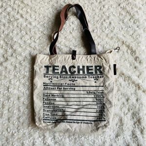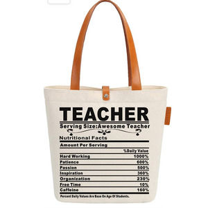 So'each Canvas Leather Zippered Tote Bag Teacher Gift Handbag Shoulder Bag