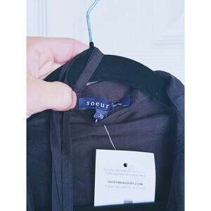 This is a beautiful Soeur Susie silk kimono wrap dress in black, size XS. It has a retail price of $350.