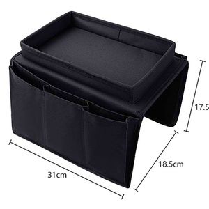 Stay organized with this armrest organizer! Crafted from waterproof oxford cloth, it features 5 pockets of varying sizes & a tray for beverages. Perfect for the sofa, armchair, recliner, or couch, it can hold magazines, books, remote controls, and more. Enjoy your TV time & keep tasks at your fingertips!