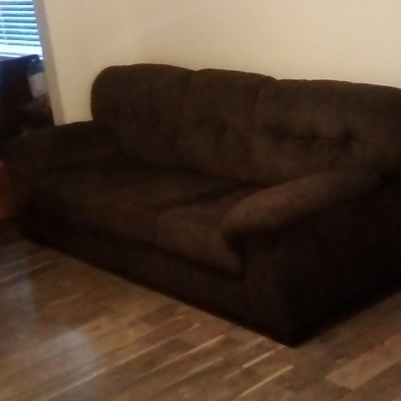 One long sofa,one short sofa,it's a dark grey color.,,it's very comfortable it's in good condition,and also I got a black table and black chairs that go with it,(all going for 150 out the door