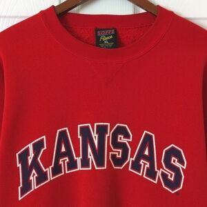 Soffe 90's Vintage Kansas Fleece Lined Pullover Crewneck Sweatshirt Red XL