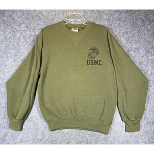 Soffe Sweatshirt Mens Small OD Green USMC Eagle Globe Anchor Made USA Crewneck