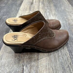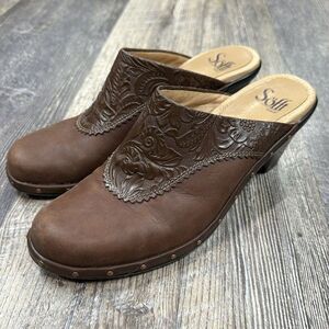 Sofft 1009320 Women Brown Leather Studded Floral Slip On Mule Shoe Size 7.5M