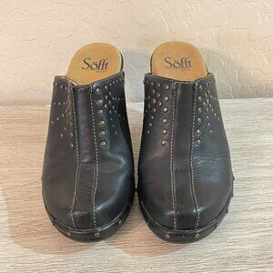 Sofft 6 Mules Clogs Heels Black Leather Studs