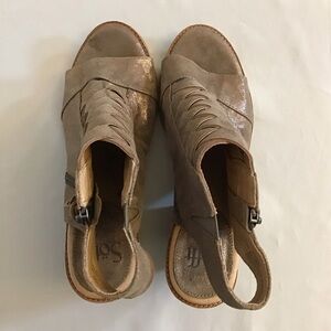 Sofft Size 8.5 Mckenna Suede Leather Metallic Sandals, Women’s Braided Comfort Shoes, Tan / Taupe. Preowned. Gently worn, with a spot on the back of the left shoe.
