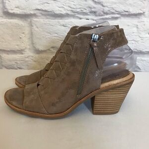 Sofft 8.5 Mckenna Suede Leather Metallic Sandals Braided Comfort Shoes Tan Taupe