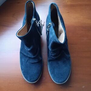 Sofft AQUA Midnight Navy Blue Suede Waterproof Wedge Booties