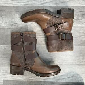 Sofft Aldina Brown Leather Buckle Ankle Moto Boots Low Heel Boho Size 6 1/2