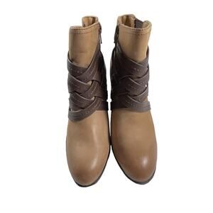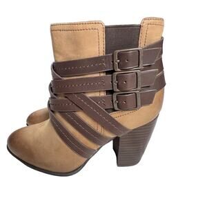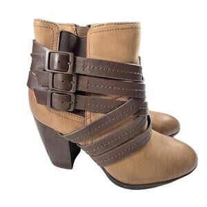 Sofft Arminda Leather Strappy Ankle Boot Stacked Heel Caramello Brown Size 7M