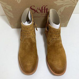 Sofft Barina Boots Suede Leather Perforated Ankle Booties Honey Size 6.5 NEW