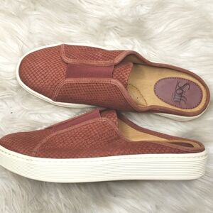 Sofft Beekon 7m Rustic red slide sneaker slip on elastic snakeskin