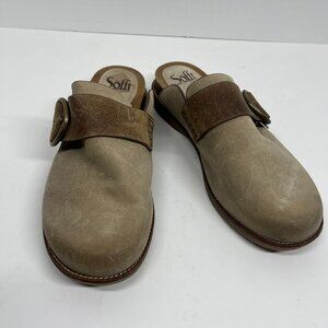 Sofft Billie Oiled Mules Suede Leather Cashmere Tan Slip on Shoes Size 9
