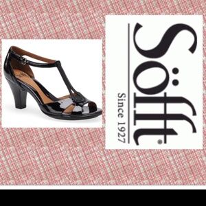 Sofft Black Patent Leather T Strap Open Toe Carlina High Heel Sandal Size 7M