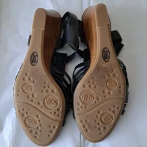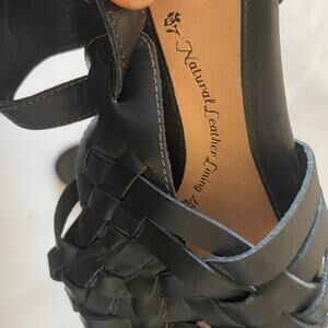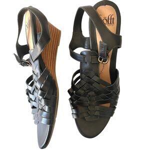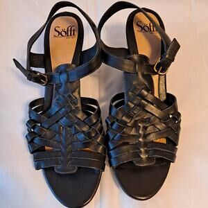 Sofft Black Petula Braided Leather Ankle Strap Wedge Sandals - Size 10M