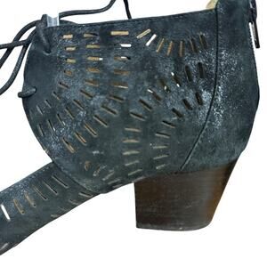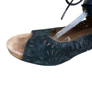 Sofft Black Suede Leather Block Heel Open Toe Sandals Shoes Ankle Strap sz 9.5