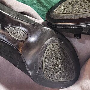 Sofft Brand Black Suede Leather and Patent Leather 3" Peep Toe Bow Detail Dress Pump Size 6.5M....Great Looking Duo Fabric Shoe will Bring Out the Best in any Outfit...Dress them up or Go with a Great casual Look....Shoes are in Great Shape need a little Cleaning....Like New...