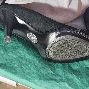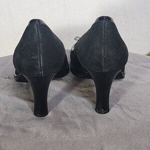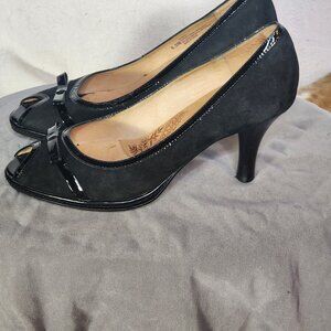 Sofft Black Suede and Patent Leather 3" Peep Toe Bow Detail Dress Pump Size 6.5M