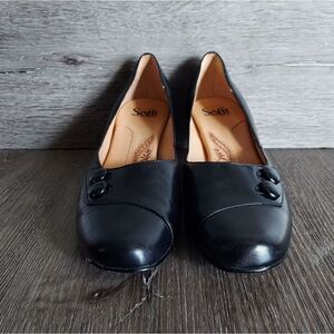 Sofft Black Leather Slip On Kitten Heel Pumps Size 9M