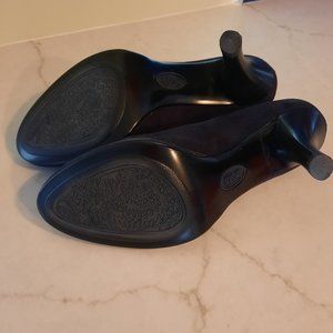 EUC dark blue suede pumps, with a 3" heel and padded foot bed. Only worn a few times, so heels and soles are in excellent condition (see pix). Retro never goes out of style!