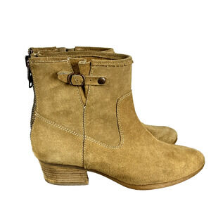 Sofft Boots Womens 7.5 Tan Suede Leather Boho Western Heels Ankle Buckle Zipper