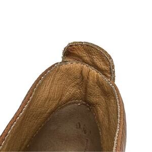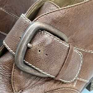 Item in Like New Condition. Small 1/2” heel, Buckle over tongue closure, Leather body, Manmade balance, Brushed brass style buckle. No signs of wear on soles.