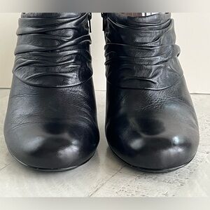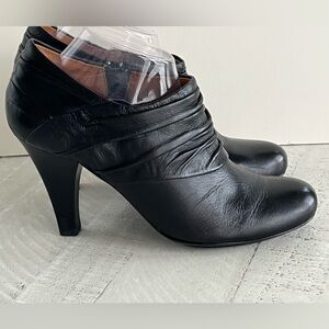 Sofft Brand Women’s Soft Black Ruched Leather High healed bootie in size 9.5