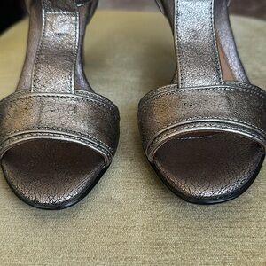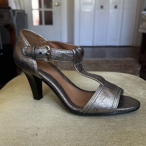 Sofft Bronze Metallic Leather T-Strap Peep Toe Heels Size 7.5