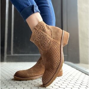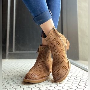 The perfect everyday bootie with a little extra twist. This delicately perforated bootie exudes western charm, in a gorgeous, on-trend silhouette.