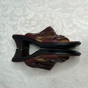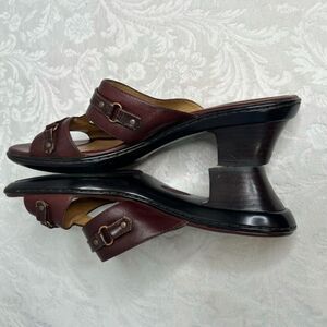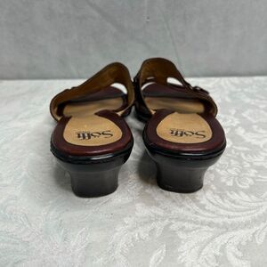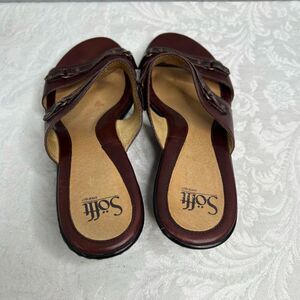 Sofft Brown Leather Slip On Block Heel Open Toe Strappy Women's Size 10M