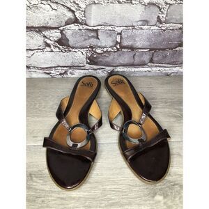 Selling Sofft Brown Patent Leather Slides Low Hidden Heel Sandals Women’s Sz 9M US/40EU