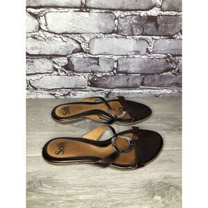 Sofft Brown Patent Leather Slides Low Hidden Heel Sandals Women’s Sz 9M US/40EU