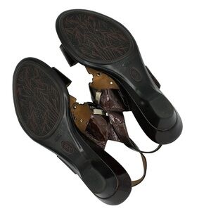 Sofft Bronzy Brown Patent Leather T-Strap Low Heel Slingback Comfort Sandal Size 11