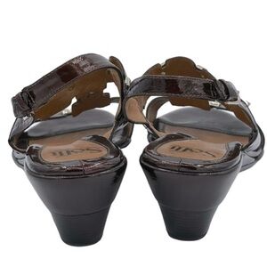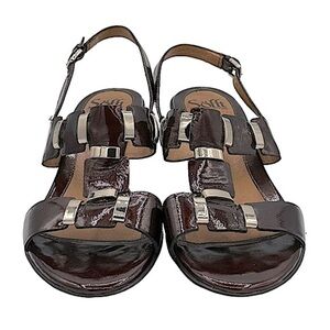 Sofft Brown Patent Leather T-Strap Low Heel Slingback Comfort Sandal Size 11