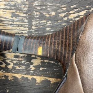 Sofft Brown Slip-on Mules Size 9.5M. Please see photos for a stain on the inside, a chip on the heel and a small scuff on the toes.