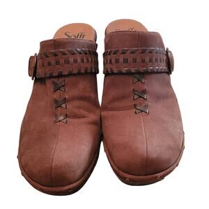 Sofft Brown Suede Buckle Accent Bohemian Mules Sz 9.5