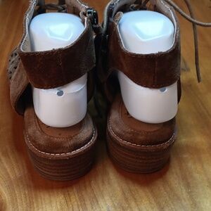 Step out in style with these chic brown suede lace-up sandals. Perfect for any occasion, they offer both comfort and elegance. size 8.5