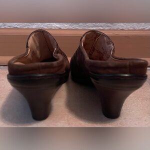 Sofft Brown Suede Slip On Mules Maroon Paisley Design Leather Onlay Women's; 9.5