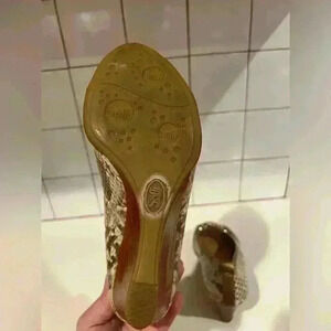 Sofft Brown/ Tan Snake Print Gold Buckle Camira Leather Wedge Peptone Size 6 EUC